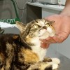 Gatita  TAVATA ,tricolor, esperando ser rasurada para preparar su esterilización.